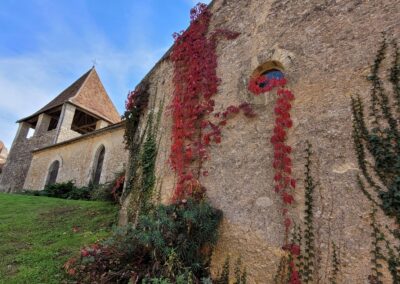 Den unverkennbaren Herbstduft des feuchten Laubes auf dem taunassen Boden in der Nase, spazieren wir entlang der Dordogne nach Limeuil (ca. 1,5 km). Erst führt uns der Weg über ein kurzes Stück Asphalt, bevor wir links den Fußspuren durchs Gras bis hinunter zum Fluss folgen. Hier führt ein Pfad durch die Flussaue bis zum Gelände und Strand des Campingplatzes Port de Limeuil: ein sehr schöner Vier-Sterne-Campingplatz, der jedoch nur von April bis September geöffnet hat. Deshalb stört man hier niemanden, wenn man außerhalb der Saison über das Gelände spaziert oder sich am Strand aufhält.