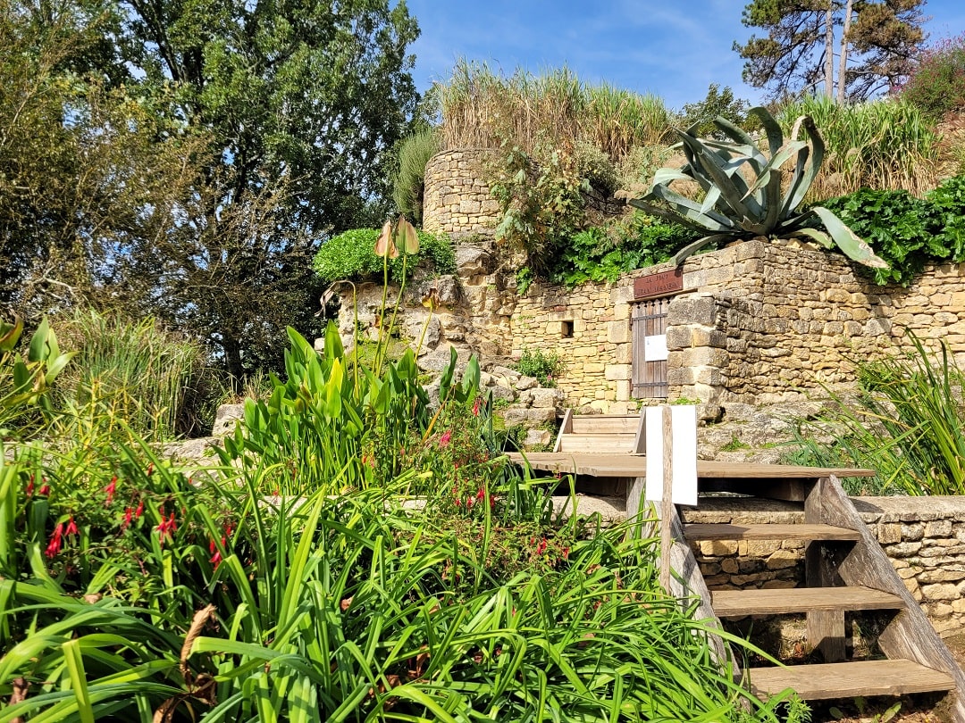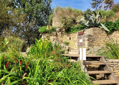 Bereits zum dritten Mal sind wir hier in den Panoramagärten von Limeuil. Neuerdings gibt es hier auch ein Escape Game, bei dem Jung und Alt spielenderweise Interessantes über Pflanzen und ihre Herkunft erfahren. Auch ein Wunschbaum reckt seine Äste in die Luft und auf schön illustrierten Infoschildern wird die Herkunft und Verwendung von Kräutern, Pflanzen und Gemüse vom Mittelalter bis heute erläutert.